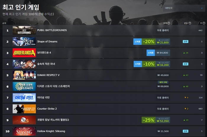 이는 ‘셰이프 오브 드림즈’가 지난 11일 글로벌 PC 게임 유통 플랫폼 ‘스팀’에 출시된 지 7일 만에 거둔 성과다. 출시 직후부터 폭발적인 반응을 얻으며 스팀 최고 동시접속자 4만 5천여 명을 넘어섰고, 최고 인기 게임 순위(탑 셀러) 글로벌 4위, 국내 2위에 오르는 성과를 거뒀다.
