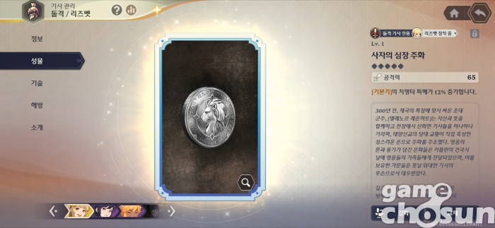 기사 성장과 착용 성물만큼 조합이 중요하다 = 게임조선 촬영
