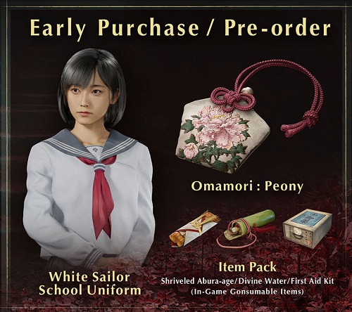 사일런트 힐 f는 PlayStation®5로 발매되며, 패키지 버전 조기 구매자를 대상으로 게임 내에서 사용할 수 있는 조기 구입 특전 바우처가 제공된다. 여기에 오프라인 매장 또는 로드샵에서 사일런트 힐 f의 패키지 버전을 구매한다면, 수량 한정으로 특제 클리어 파일도 제공된다.