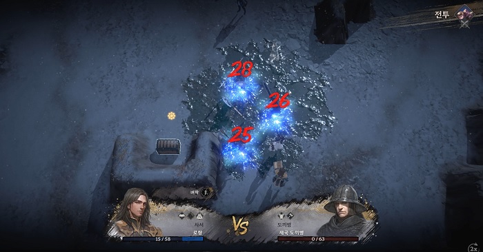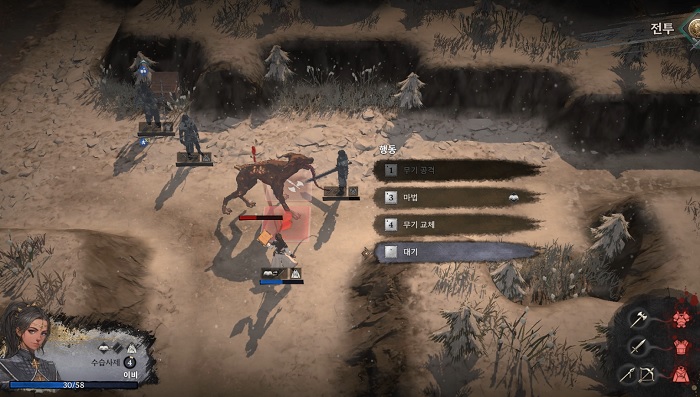 턴제 SRPG와 로그라이크 요소를 접목시키면서 해결하지 못한 과제가 하나 존재합니다. 바로 피로도 부분인데요. 앞서 언급한 바와 같이 맵의 크기를 협소하게 설계하고 캐릭터의 행동 반경을 넓게 설정하면서 매 스테이지가 과도하게 늘어지지 않도록 했습니다. 또 아군과 적 캐릭터의 생존력을 과도하게 높게 잡지 않았기에 빠르게 적을 처치하면서 스테이지 목표를 달성할 수 있도록 했죠.