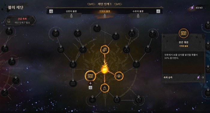 단, '불꽃의 잔재'라는 아이템만은 사라지지 않고 누적되는데요. 불꽃의 잔재는 2회차 플레이부터 해금되는 불의 제단에서 영구적으로 스탯을 증가시키는 데 사용됩니다. 불의 제단에 투자한 불꽃의 잔재는 초기화가 가능하므로 매 플레이 때마다 전략 스타일을 달리 하면서 커스터마이징하는 즐거움이 있습니다.