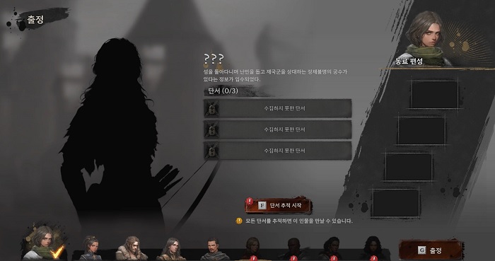 새로운 동료를 영입하는 시스템도 눈여겨 볼만한데요. 특정 스토리 구간 도달 및 이벤트 발생으로 동료가 추가되는 것이 아니라, 새로운 동료에 대한 단서를 추적해 목표를 완료했을 때 얻게 됩니다. 따라서 메인 시나리오 진행 뿐만 아니라 동료를 획득해 나가는 것도 하나의 즐길거리가 될 수 있도록 했습니다.