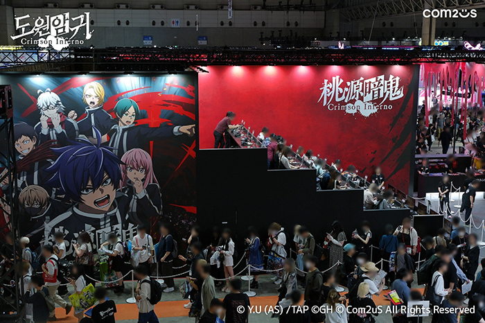 ‘도원암귀 크림슨 인페르노’는 7월부터 방영 중인 TV 애니메이션 ‘도원암귀’를 기반으로 컴투스가 개발 중인 신작으로, 이번 도쿄게임쇼 일반 전시관에 단독 부스로 참가해 수십만 명의 관람객을 끌어 모으며 전시 기간 내내 높은 흥행 열기를 이어갔다.