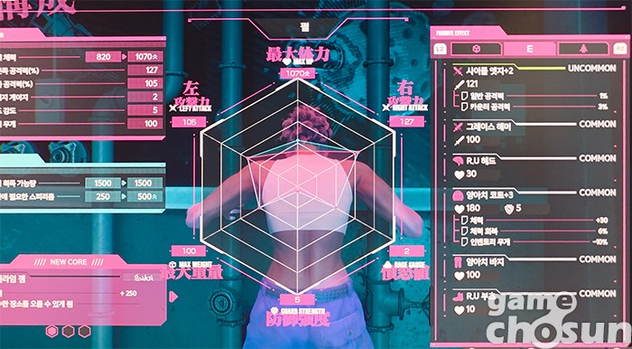 우여곡절 끝에 탈출에 성공했다면 강화 요소를 사용해 캐릭터의 능력을 강화할 수 있다. 다만, 이 코어는 강화 능력치가 무작위로 정해지는 것으로 예상돼 원하는 장비와 코어를 파밍하는 것이 이 게임의 반복 플레이 동기가 될 것으로 보인다.