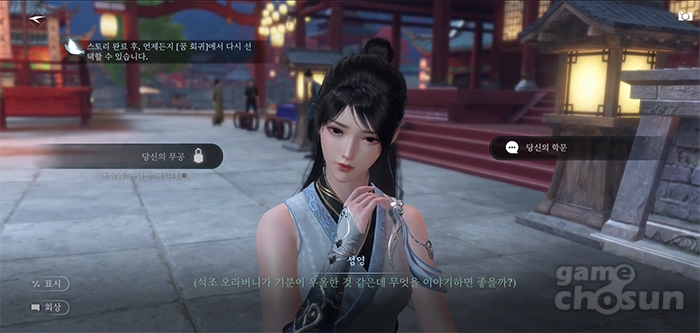 상대의 무공에 대한 정보가 없어 선택지가 닫힌 모습