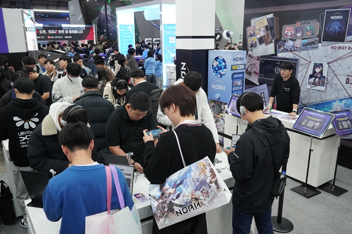 이번 전시를 통해 처음으로 유저들에게 공개된 ‘노아’ 부스에는 지난 13일부터 16일까지 나흘간 참관객들이 직접 게임을 체험할 수 있는 시연장이 마련됐다. 타이틀 키 비주얼과 캐릭터 아트워크가 곳곳에 설치된 현장에는 매일 오픈부터 참관을 기다리는 긴 대기열이 형성되며 높은 관심이 이어졌다.