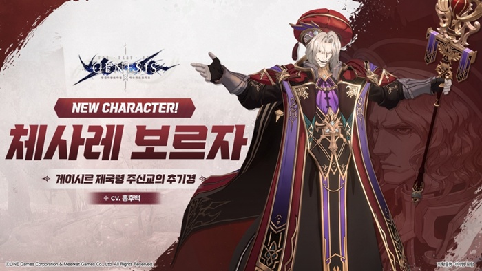 업데이트를 통해 ‘서풍의 광시곡’ 등장 캐릭터인 ‘체사레 보르자’와 전용 무기 ‘부정의 성궤’도 추가됐다. ‘체사레 보르자’는 전투 시 초필살기 ‘뒤틀린 희생’을 사용하며, 전용무기 장착 시 무기 잠재력을 개방할 수 있다.