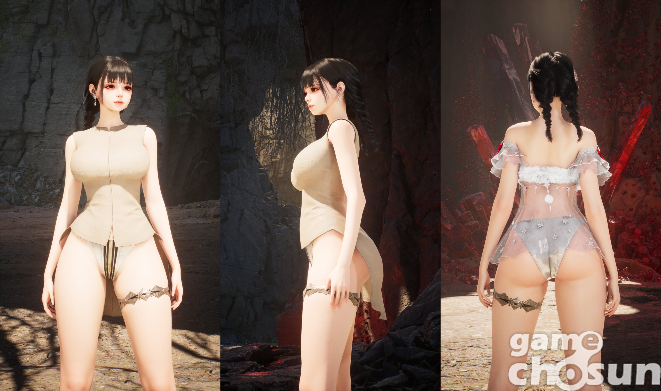역시 상의와 세트 느낌의 하의다. 화이트 크리스마스와 비슷한 수준의 하의 노출도와 허벅지를 지탱하는 금속 가터 장식이 포인트다.