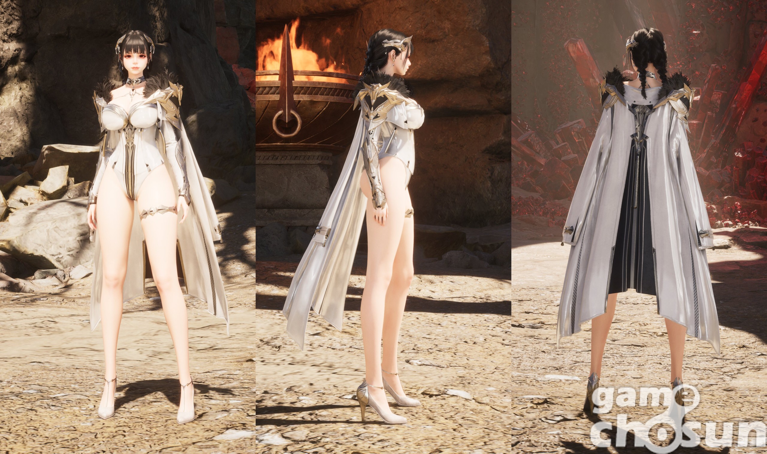 이번 의상의 핵심은 역시나 섹시함이다. 어깨 장식과 망토를 숨기면 오프숄더가 되고, 하의의 하이레그는 눈꽃 시스루나 화이트 크리스마스와 동일한 수준이다. 하이힐도 깔끔한 디자인으로 다른 의상과 매치하기 좋다.