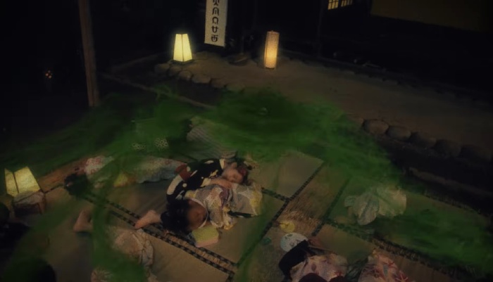 특히 종이 연극을 보여주는 것처럼 묘사된 공식 트레일러 영상의 경우 그우린차에는 그 어떤 차를 내와도 만족하지 못하여 죽은 고집불통 다도가의 영혼이 깃들어있다는 괴담을 들려주고 있는데요. 영상 막바지에 이야기를 듣던 아이들과 만담가가 말차와 그 가루가 뿌려진 경단을 보고 경악하더니 모조리 쓰러지는 섬뜩한 연출을 보여주고 있죠.