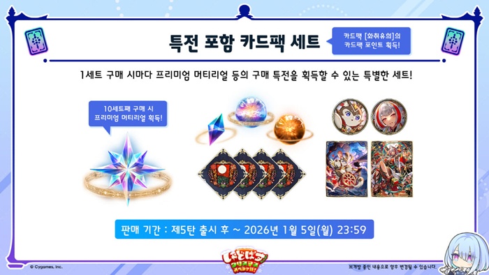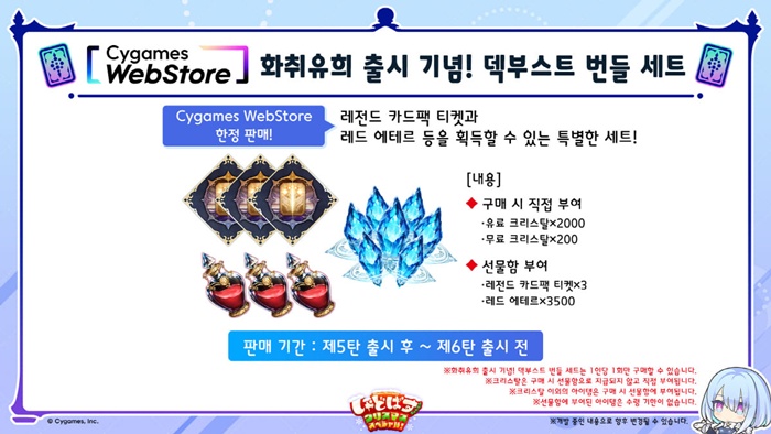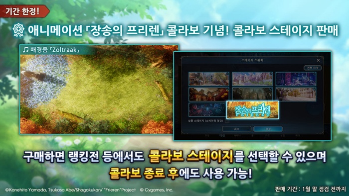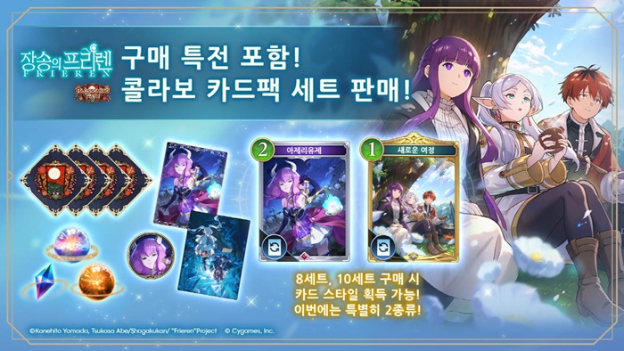 애니메이션 ‘장송의 프리렌’ 콜라보를 기념하여 총 4종류의 덱 중 원하는 덱을 하나 선택해 획득할 수 있는 덱 선물 이벤트를 진행하며 특별한 세트와 신규 상품 또한 판매한다.