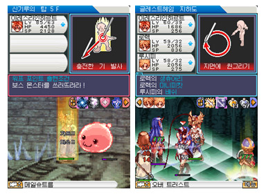 전투 스킬을 사용할 때도 터치펜 하나만 있으면 되는데, 게임 화면의 지시에 따라 터치스크린을 두드리거나, 선을 긋거나, 원을 그리는 등 터치 모양에 따라 다양하고 화려한 스킬을 사용할 수 있다.