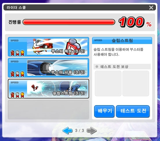 ‘에어라이더’를 처음 접한 유저라면 라이더 스쿨 과정이 필수다. 이 과정은 게임모드 별 플레이 방법을 배우고, 배운 내용을 바탕으로 과제에 도전해 RP(경험치)와 아이템 구입시 사용되는 루찌를 보상 받을 수도 있다.