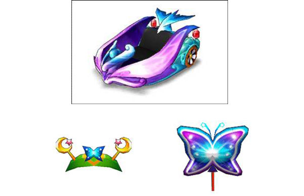 ↑ 위부터 시계방향으로 신규 카트바디 님프윙, 요정풍선, 요정 전자파밴드