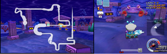 요정의 마을에서 출발해 ‘판타리니’ 바다 속 신비한 해저 신전을 통과하는 등 지상과 바닷속을 잇는 다이내믹한 코스로 구성된 스피드전 전용 트랙이다. 바다 속으로 힘차게 다이빙한 후 숨겨진 해저 신전을 가로 질러 질주하는 시원한 속도감을 느낄 수 있다.