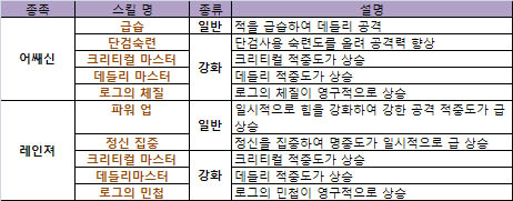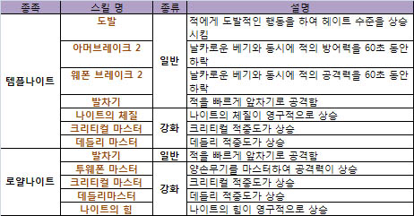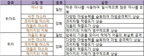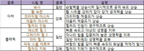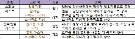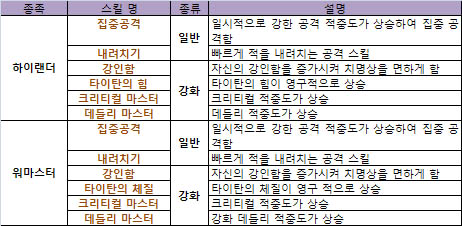 스킬 : 기존보다 크게는 2배 이상의 효과를 내는 스킬들이 추가됐고 종족별로 추가되는 스킬은 다음과 같다.