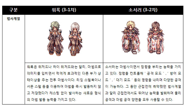 3-2차 직업군은 로얄가드, 소서러, 제네릭, 슈라, 쉐도우 체이서, 민스트렐, 원더러 등 총 7종의 캐릭터의 특성에 맞춰 화려한 외형을 갖추고 있다. 이로써 '라그'는 1~3차 전직 및 전승을 포함해 총 52가지의 직업군을 선보이게 됐으며 유저들은 최고 150레벨까지 캐릭터 레벨을 확장시켜 게임을 즐길 수 있다.