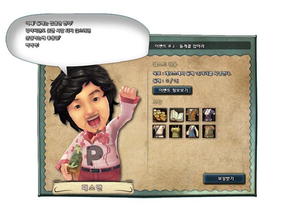 새로운 모습으로 돌아온 패스맨은 이번 1차 CBT에서 이벤트 퀘스트로 테스터들의 진행을 돕고 세계를 안내하는 역할을 맡았다.