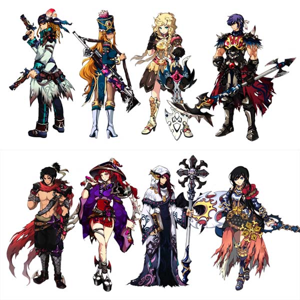 캐릭터 생성시에는 전사, 도적, 마법사, 총잡이 4가지 직업군 중 하나를 선택할 수 있으며, 전직을 통해 각 무기에 특화된 영웅으로 거듭나게 된다.