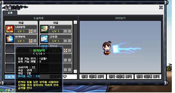 도술을 배울 수 있는 레벨이 되면 기본 1단계로 미리 사용해볼 수 있다.