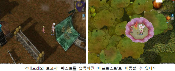 ‘비프로스트’로 이동하고 싶다면 ‘테오레의 보고서’ 퀘스트를 완료하면 된다. 100레벨 이상의 유저만이 퀘스트를 습득할 수 있으며, ‘미드가르드 캠프’에 있는 NPC ‘테오레’를 통해 퀘스트가 시작된다. 이 퀘스트는 ‘수풀’, ‘지쳐 보이는 요정’, ‘라피네 병사’, ‘물류창고 관리자’, ‘요네스’, ‘다프레르’ 등 다양한 NPC와 대화를 통해 ‘비프로스트’와 ‘모라 마을’에 대한 정보를 얻게 하며, ‘비프로스트’로 이동을 유도한다