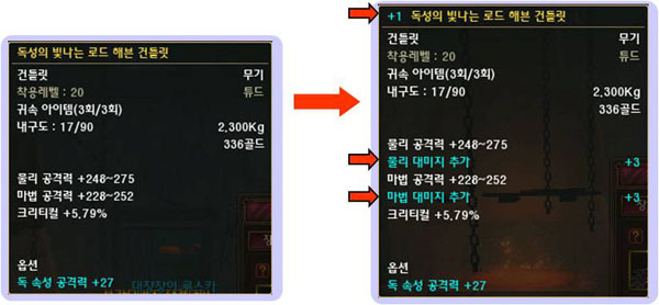 - 인챈트에 따른 등급이나 레벨의 변화는 없으며, +20강화까지 존재함