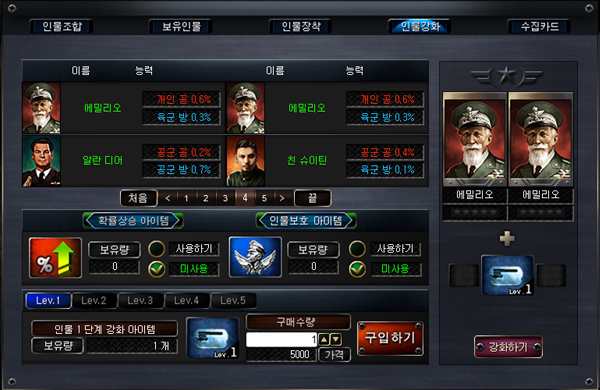 ↑ 인물을 강화하면 공격과 방어가 상승한다