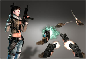 4. 듀얼거너는 SMG를 양손에 각각 한 자루씩 들고 빠른 연사로 적을 공격하는 캐릭터다. 근접 무기도 군용 나이프 두 개를 사용한다. 특수 능력으로 아군이나 자신을 치유할 수도 있다. 난사 플레이에 최적화되어 있고, 체력을 회복할 수 있다는 점에서, FPS에 익숙하지 않은 초보자들에게 적합한 캐릭터다.