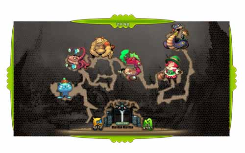 던전 진입 화면, 각 던전 별 보스 몬스터가 표시되어있다.