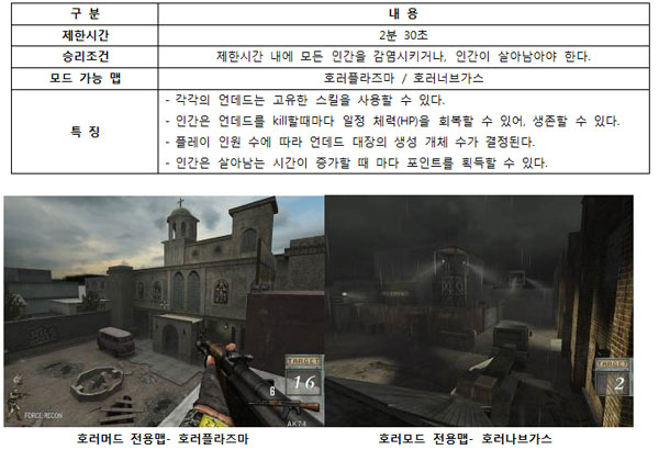 '호러모드'와 언뜻 비슷해 보이는 모드들은 기존에도 많이 있어왔던 것이 사실이다. 이 같은 룰은 쫓고 쫓기는 단순한 플레이 전개를 보이기 때문에 상대적으로 플레이 하기가 쉬워 FPS 초보 이용자도 쉽게 진입할 수 있다는 것이 가장 큰 장점이다. 하지만 스페셜포스는 여기에 차별화를 두었다. 6년 동안 스페셜포스를 플레이해 온 마니아 이용자들도 재미있게 게임을 즐길 수 있도록 하기 위해 언데드 진영에서 잡는 재미를 부각시킬 수 있도록 다양한 스킬을 넣은 것이다.