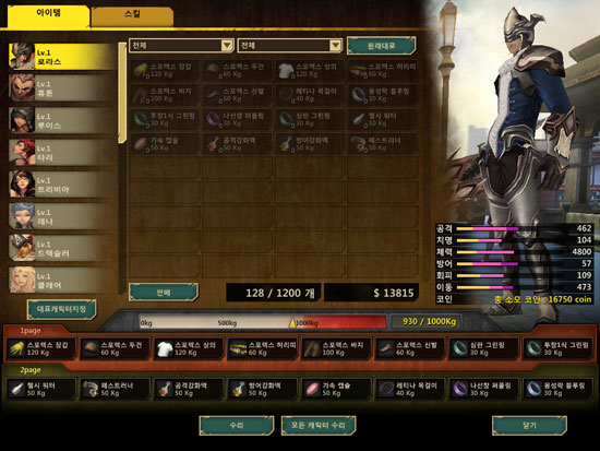아이템에는 게임 내에서 각종 능력치를 올려 주는 장비아이템, 스킬을 강화시켜 주는 장신구아이템, 일정 시간동안 효과가 지속되는 소모품 아이템 등의 종류가 있으며 장비아이템을 사용할 경우 게임내 레벨이 올라가기 때문에 상대방이 얼마나 강한지 가늠해 볼 수 있다. 게임 도중 자신의 전적, 레벨, 장비하고 있는 아이템의 정보등을 확인하고 싶다면 TAB키 누르고 있으면 된다.