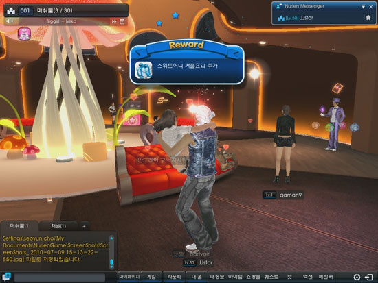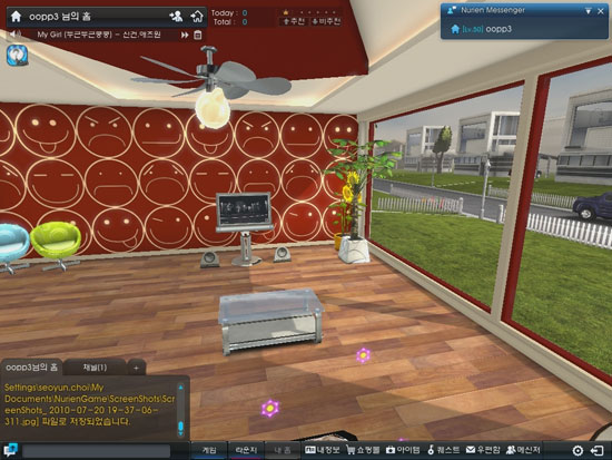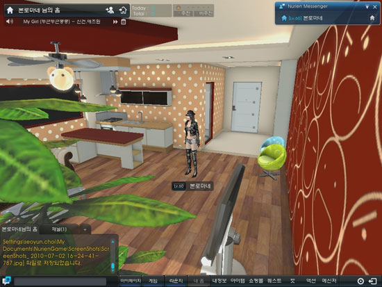 또한, 레벨에 따라 개인의 공간인 ‘홈’이 주어진다. 친한 친구들끼리 모여 비밀 대화를 나눌 수 있으며, 친구들을 직접 초대해 함께 놀 수 있는 공간으로 활용 가능하다. 이용자의 개성에 맞춰 벽지, 가전제품, 가구 등 다양한 아이템을 구입해 자신이 원하는 대로 인테리어를 꾸밀 수 있다.
