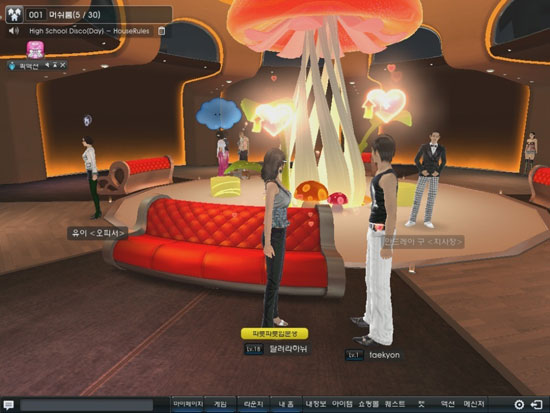 이용자들은 각 라운지와 홈을 통해 자유로운 대화와 상호액션을 통해 관계를 맺는 등 자발적인 커뮤니케이션이 가능하다. 여러 이용자가 동시에 입장할 수 있는 라운지를 마련, 각 라운지에는 각종 기능의 NPC를 배치해 퀘스트, 쇼핑, 타로게임, 춤 연습 등 다양한 즐길 거리를 제공한다.