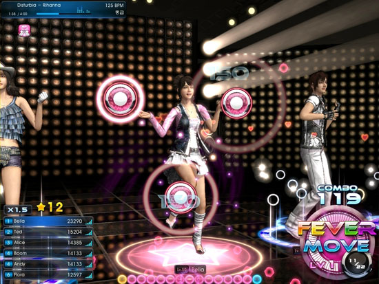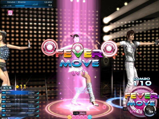 ↑ 피버 게이지가 쌓이면 발동되어 높은 보너스 점수를 얻을 수 있는 피버무브