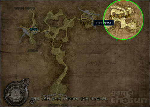 수비대 전진캠프의 퀘스트 중, 길리두 전사를 처치하는 [보급로 방어] 퀘스트를 클리어 하면 [악마가 기다리는 소굴로] 퀘스트가 나온다. 이 퀘스트는 불카누스 악마기사 5마리, 고대의 숲 볼칸 3마리를 처치하는 퀘스트인데, 이 퀘스트를 수행하며 불카누스 악마기사의 위치를 파악해두자.