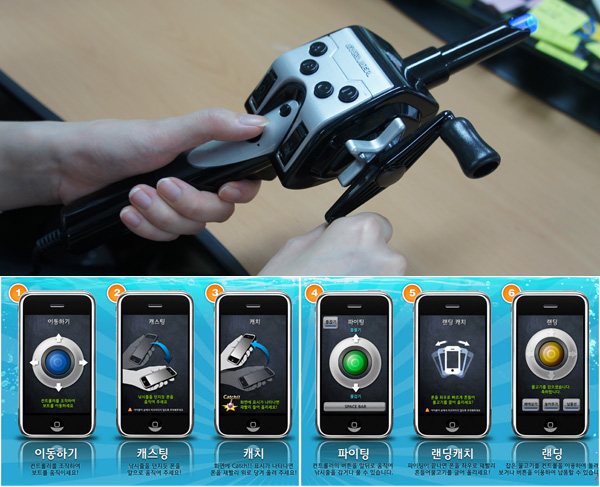 실제 낚시의 감동을 그대로~ 전용 컨트롤러 게임 기획 초기단계부터 함께 개발돼 온 전용 컨트롤러는 루어를 바다에 던지는 캐스팅 동작, 릴을 감는 동작 그리고 낚싯대를 좌/우로 잡아채는 낚시 동작을 인식하여 게임과 연동된다. 따라서 실제 낚시와 흡사한 낚시 플레이를 할 수 있다.