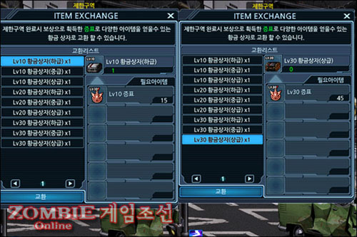 ▲ 증표를 모아 황금상자로 교환하자. (출처 : 좀비온라인 게임조선)