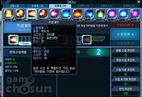 ▲ 각 스킬은 최대 16레벨까지 찍을 수 있다.
