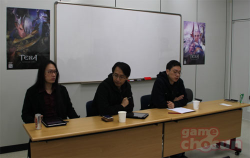 MMORPG '테라'의 주요 개발진(박현규 게임디자인 팀장, 황철웅 아트 팀장)과 블루홀스튜디오의 김강석 대표가 내주로 예정된 업데이트를 앞두고 10일 강남 랜드마크타워에 위치한 본사에서 인터뷰를 가졌다.