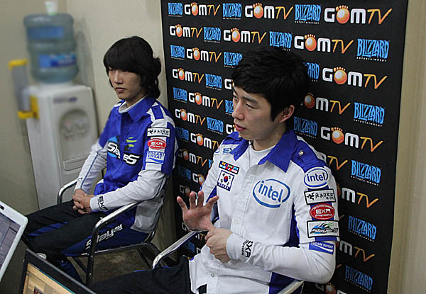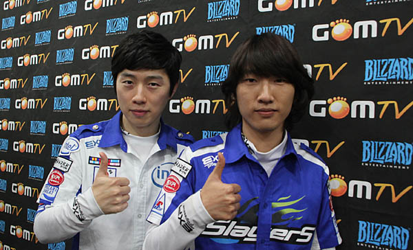 ▲ '황제' 임요환 선수(우)와 홍승표 플레잉 코치(조)