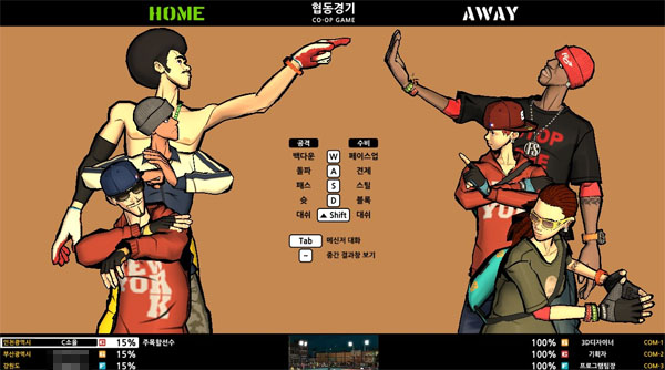 정규 리그에 들어가기 앞서 진행되는 연습경기는 컴퓨터(AI)와 진행되는 경기로 프리스타일 개발팀 전원이 등장한다.