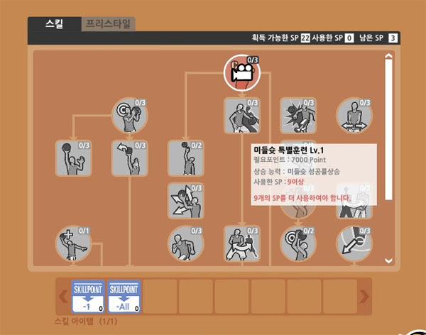 한 예로, 미들슛이 강한 센터나 3점슛에 능한 포워드 등을 추가 전직이 아닌 스킬트리 상에서 구현 할 수 있게 된 것이다.