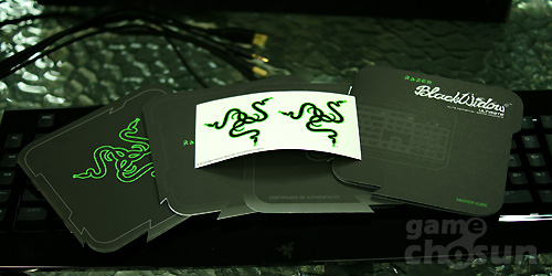 고가의 제품 답게 꼼꼼하고 고급스럽게 포장돼 있으며 레이저 특유의 테두리 모양으로 만들어진 카달로그와 설명서, 그리고 레이저 마크의 스티커가 포함돼 있다.
