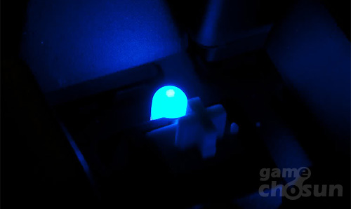푸륵색 LED로 빛을 발하는 키캡의 백라이트는 FN+F12키 조합을 눌러 '꺼짐-약-중-강-깜빡임' 순으로 5단계로 조명을 조절할 수 있다.