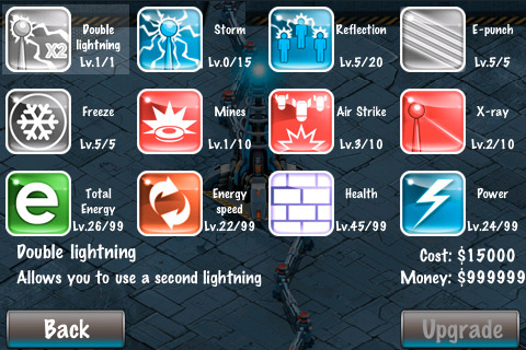 특히, 게이머는 각 스테이지 사이마다 전기 충격의 강도 및 수, 에너지의 양과 차오르는 속도, 지뢰설치 및 폭격 등의 능력치 및 특수기술들을 향상 시킬 수 있어 디펜스게임 특유의 재미요소를 극대화했다.