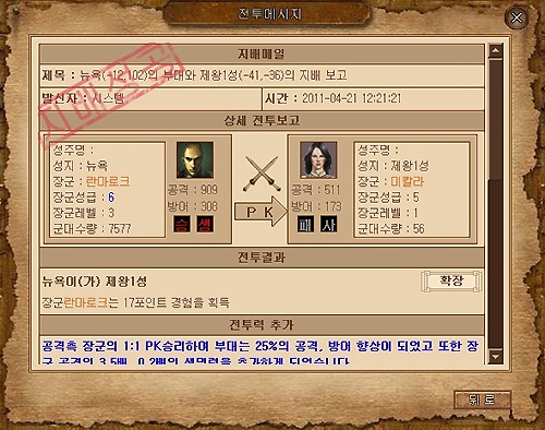 또한 지배전쟁을 통해 지배포인트를 쌓아 높은 영예호칭을 받게 되면 다양한 아이템보상을 받을 수 있다.