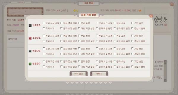 또, 문파의 직위도 '현무당주''주작당주''백호당주''청룡당주' 등이 추가되고 각 직위에 따른 여러 권한도 부여돼 물주의 부재 시에도 문파 운영이 가능해졌다.