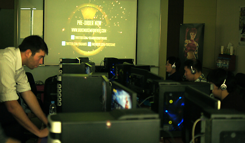 시연장에 들어서자마자 맞이해주는 마초캐릭터 듀크가 오는 6월 10일 정식출시됨을 알렸다. 이날 시연해볼 수 있었던 '듀크뉴켐 포에버'는 멀티플레이 버전으로 데스매치, 팀 듀크매치, 캡쳐 더 베이브, 헤일 투 더 킹 등 4종류의 모드를 체험해 볼 수 있었다.