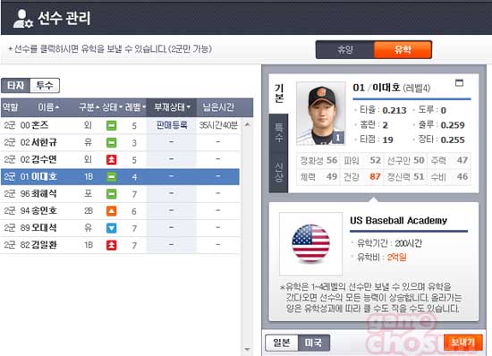 A. 꾸준히 선발로 기용하면서 키운 선수는 동레벨에서 상위권 선수가 된다. 또 유학을 통해서 어느 정도 해결하려고 한다. 4레벨 선수가 유학으로 5레벨 혹은 6,7레벨이 될 수도 있다.