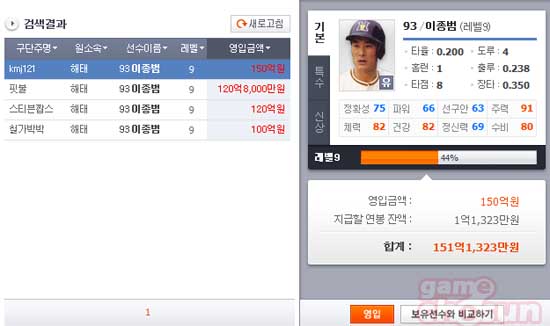 똑같은 능력치인데도 네임벨류가 있는 경우도 있다. 이종범 등 유명한 선수가 이에 해당하는 상황이다.